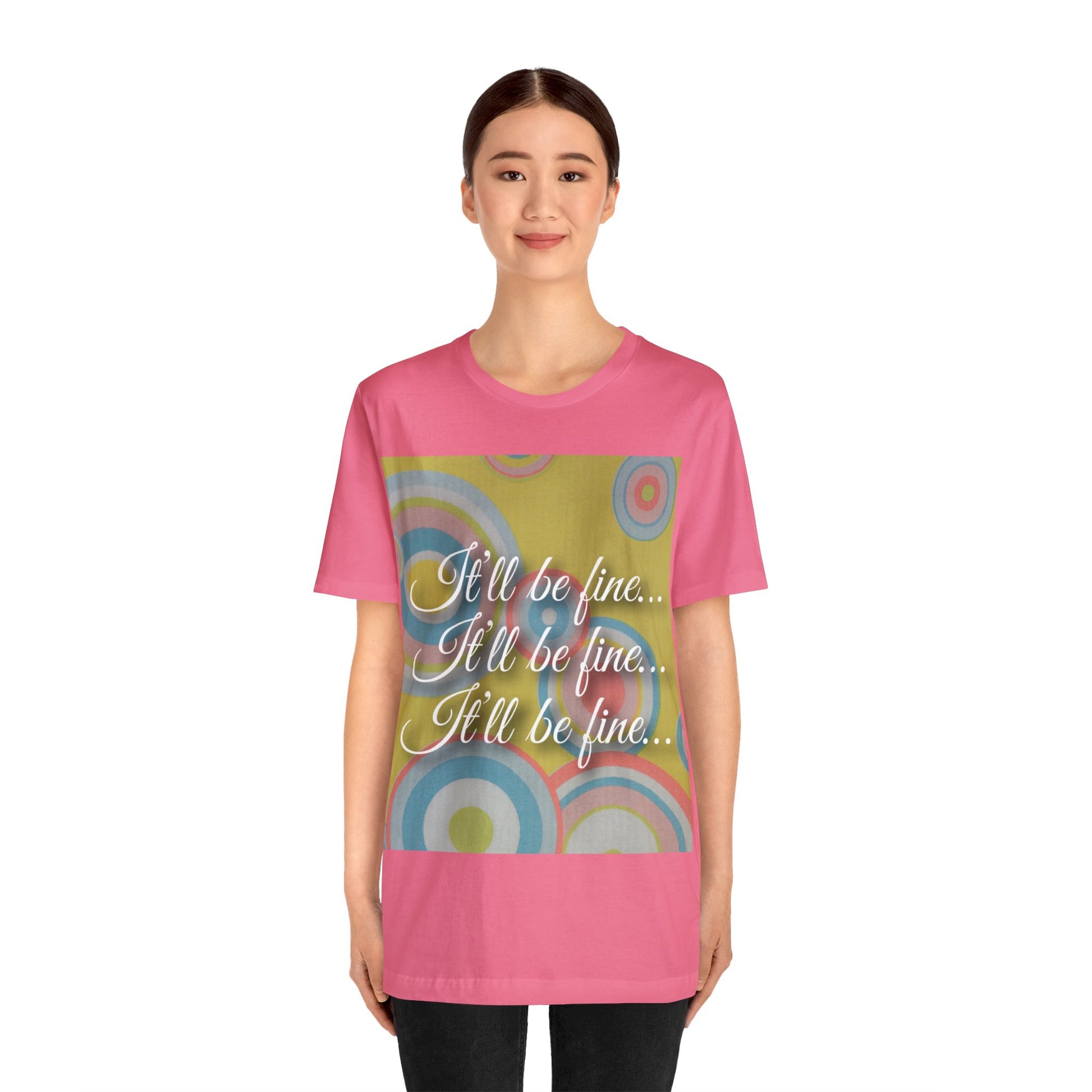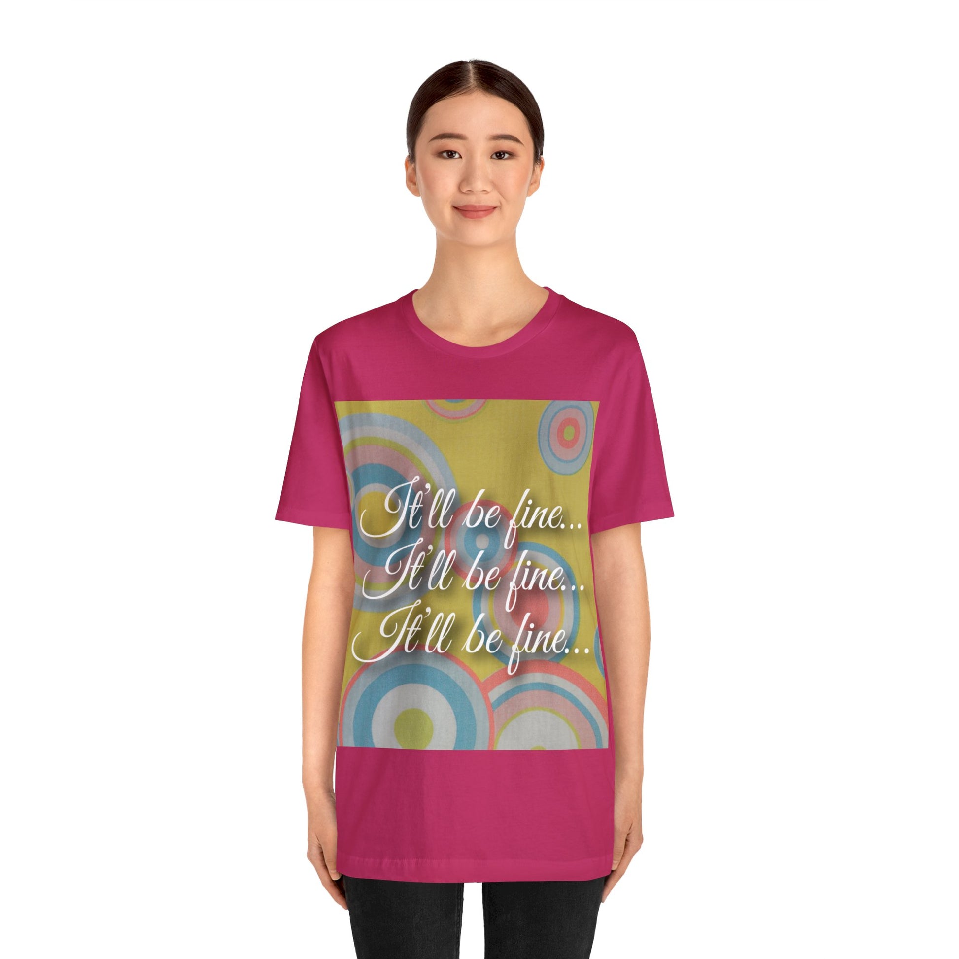 This classic unisex jersey short sleeve tee fits like a well-loved favorite. These t-shirts have-ribbed knit collars to bolster shaping and lets face it, we all need that. The shoulders are tapered for a better fit over time. Dual side seams hold the garment's shape for longer
